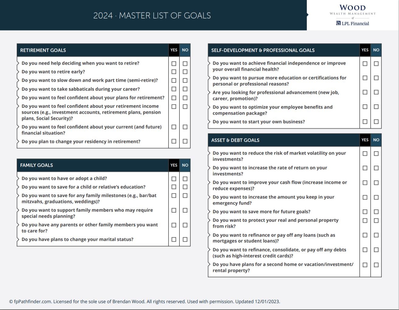 Here’s a helpful goal-planning checklist as a reminder to honor our financial goals just as we also strive to stick with our new-year’s resolutions this winter.