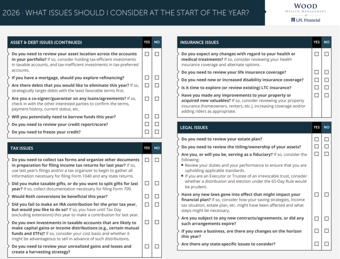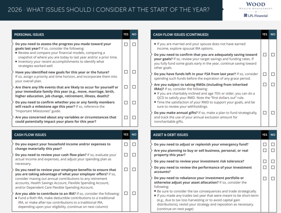The start of the year is a great time for a financial check-up. To those who are looking to make a fresh start this year, take a look at this checklist. It covers fundamental considerations, including personal issues, cash flow issues, asset and debt issues, and more.